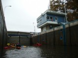 Takzvaně "ždímnout" jak prohlásil Tomíček, jsme se ten den nechali 2x. V komoře se vyplatí zůstat u horní brány, protože u té spodní dost rychle odtéká voda, jak hladina klesá. Takže to tam taky pěkně táhne do odtoků, které vypadají nepříjemně. Rychlost klesání je kolem 1 - 2 cm / sec, 3 metry jsou vypuštěné vlastně hned.