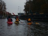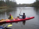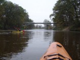 Až na ruce, které zábly, když si je člověk namočil, to docela šlo. Sem tam pršelo, pak zase přestalo, teplota kolem 5 st.C. Cestou jsme minuli jeden jez, já jsem ho nakonec dal, byl tedy bubnový a spuštěný, převýšení cca 10 cm.:-)