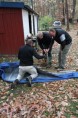 Jirka z Honzou mu u toho sekundovali. Nakonec kajak vcelku držel po kupě a dokonce se zdálo, že Michal oblepil všechny díry.