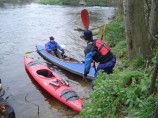 Vyrazili jsme proti proudu Jizery. U mostu v Předměřicích jsme chtěli začít shazovat lodě, ale Jirka začal, že by si ještě chtěl dát tu peřejku pod mostem, o kterou bychom přišli. Tak jsme sedli znovu do aut a rozjeli se dál proti proudu. Jenom nebyl nikde poblíž vlez do vody, tak jsme lodě nakonec dali na vodu asi 4 kiláky proti proudu pod rozbořeným jezem. Vlez do vody nic moc, strmé břehy.