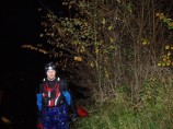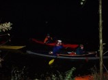 Na Labe jezdí dost Němci, podle slov zdymadelníků. S večerem jsme připluli k třetímu jezu, nad ním jsme měli podle slov Michala "přejít már metrů do sousedního koryta" no na břehu už byla tma, takže jsme naštěstí neviděli do čeho jdeme. Viděli jsme jen vzdalující se čelovky Jirky a Tomíčka. Tak jsme si nějak vypomohli aby holky netáhly dvojkajaky a vydali se asi 300 metrů po poli někam, kde Jirka tvrdil, že je slepé rameno. To jsme tedy nakonec našli a v úplně tmě naskákali do lodí. Jeli jsme ještě asi kilometr k Jirkově chatě.