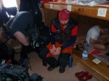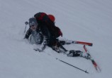 Vyrážíme – jsme zvědavi, těšíme se a zároveň máme trochu obavy z toho, co nás čeká. Jak obratem zjistíme, tak oprávněně…. Lanovka nás (družstvo ve složení vůdce šimon, pěšáci Vesnice (pro chlapy Jarin) , Tom, Honza a tři drsňáci z Přeštic – Milan, Roman a Pavel) vyvezla z Chamonix na Grand Montets do výšky 3230 m.n.m., následoval první vtipný sjezd s těžkým batohem na ledovec Argentiere 2550m.n.m. a zvláštní varovné zadýchávání se. Vysoká nadmořská výška a těžkej bágl udělá opravdu svoje… Pak už jsme s vervou stoupali do sedla Chardonnet 3320m.n.m., v jehož polovině jsme si začali zřetelně uvědomovat, že to teda nebude úplně prča. Příznaky: hučení v hlavě, žaludek na vodě a pocit, že se člověk prostě nenadechne, i když to sakra potřebuje….. Vesnice a Honza trochu bojovali sami se sebou, ostatní celkem v klidu. Sedlo nakonec dobito, hurá do maček a na pokraji sil slaňováním dolů. Docela zážitek. Poté traverz a stoupání k dalšímu sedélku Salina 3261m.n.m., malému, leč pekelně strmému. Vesnice s Honzou sundávají lyže a škrábou se směr vzhůru. Ufs… Nahoře popadáme dech, čeká nás mírný sjezd až rovina po Plateau Du Trient, na jejímž konci vidíme chatu Trient 3170m.n.m. Sláva. To jsme ovšem netušili, že díky vyčerpání k ní půjdeme přes půl hodiny (vzdálenost 450 m, převýšení 70m). Bez komentáře…. Pak jsme si dřepli, hodili do sebe coly, našeho věrného společníka Enervit a v duchu přemýšleli, jak těch šest dní přežijeme. Večeře výborná, chajda milá, počasí slibovalo opět slunečno.