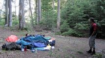 vybral misto na prenocovani a pripravil si veci ke spani. Opet telefon: