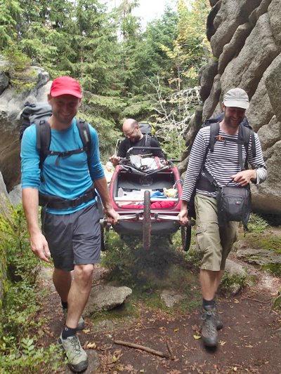v neděli 28.8. půjdeme z Českých Žlebů do Nového údolí-Haidmühle (8 km), odtamtud buď dojdeme do Stožce (další 4 km) anebo dojedeme vlakem (jezdí každou hodinu), spíme v Penzionu Pstruh http://www.pstruh.eu/