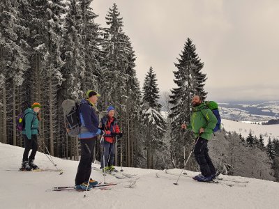 So - výstup na Králický Sněžník, návštěva polské chaty pod Sněžníkem, polyžování na české straně